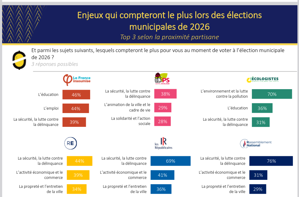 Pour les municipales, l’incertitude règne sur l’issue du vote ou sur les alliances mais il est une certitude : la sécurité sera LE sujet au cœur de ces élections - Odoxa Nouveau sondage proposé par Odoxa le 05/07/2025 à 11:31 Type de contenu : Sondage Zone géographique concernée : France Thématique : Politique L'Opinion tranchée ,